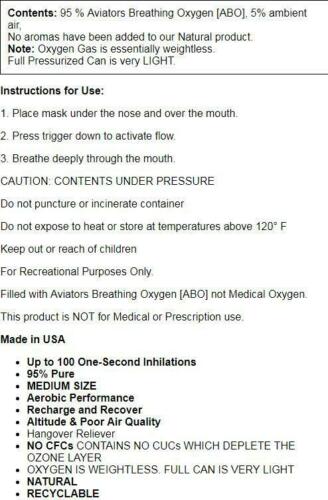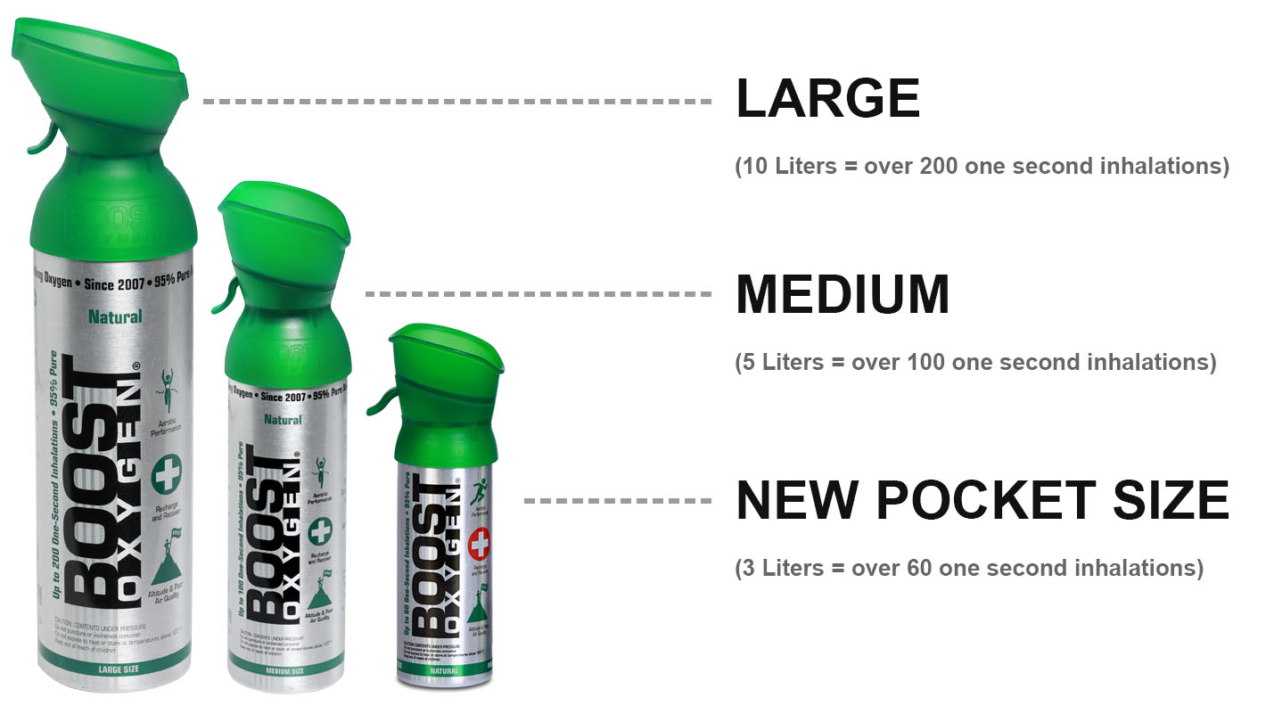 Boost Oxygen is 95% pure supplemental Oxygen To Go, no prescription needed. When you want all-natural respiratory support, Boost Oxygen is the #1 best-selling, most trusted brand. The health benefits of oxygen are undeniable. Boost Oxygen has made these benefits readily available in a convenient, lightweight, portable oxygen canister that is 100% recyclable. Oxygen fuels cellular functions that provide energy to your body and brain. However, the air we breathe only contains around 21% oxygen, with the majority being 78% nitrogen. Boost Oxygen provides 95% pure Oxygen To Go! With Boost Oxygen “Help Is Here” for athletes, senior citizens, students and those at higher altitudes for safe, all-natural energy without stimulants or sugar. Now offered in three sizes: 3 Liter Pocket Size (60 one-second inhalations – enough for a day trip or “on the go” and includes our popular mouthpiece), 5 Liter Medium (100 one-second inhalations – recommended for daily home use) and 10 Liter Large (200 one-second inhalations – recommended for weekly home use).The product and statements about the product have not been evaluated by the Food and Drug Administration. This product is not intended to diagnose, treat, cure, or prevent any disease. For Recreational Purposes Only. Boost Oxygen® is filled with Aviator’s Breathing Oxygen (ABO) and not Medical Oxygen. This product is NOT for Medical or Prescription use. Refer to the product label for more information.