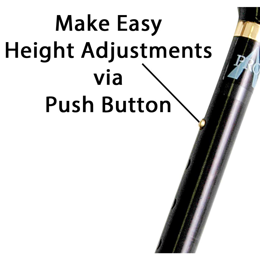 - ADJUSTABLE HEIGHT FROM 31-37". A collapsible cane and adjustable cane that adjusts from 31 inches to 37 inches in height. Cane can also be used as walking stick on uneven terrain.